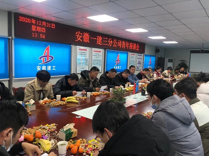2020年12月31日,安徽一建三分公司在錦繡龍川府EF地塊項(xiàng)目部會(huì)議室召開青年座談會(huì)。分公司領(lǐng)導(dǎo)、機(jī)關(guān)及所屬項(xiàng)目部青年職工代表近60人參加座談。