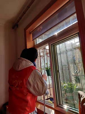 志愿者在得知有位老職工家里有馬蜂窩,給其生活帶來困擾和安全隱患后,立即采取行動(dòng),拿起工具對(duì)位于房屋高處的馬蜂窩進(jìn)行快速清除,這一舉動(dòng)讓這位老職工倍感溫馨。