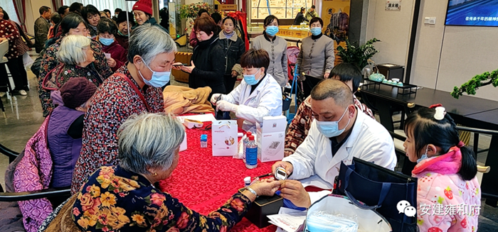 阜陽支部組織開展抗“疫”溫暖人心活動。近期氣候多變、流感易發(fā),3月5日-6日阜陽支部開展“國企抗疫 健康隨行”活動下鄉(xiāng),專家醫(yī)生們先后到達阜南縣會龍鎮(zhèn)、段郢鄉(xiāng)和我們雍和府售樓部,活動主要面向鄉(xiāng)鎮(zhèn)群體人員開展免費義診,普及“疫情知識”和健康知識的宣傳,活動現(xiàn)場愛心小分隊還為群眾準備了免費口罩,為了廣泛普及健康知識,提升鄉(xiāng)鎮(zhèn)居民對健康理念,使鄉(xiāng)鎮(zhèn)居民遠離疾病、更好的了解自己的身體狀況,免費為居民測量血壓血糖、心率、肺部聽診等,并現(xiàn)場進行健康管理指導,很多老人聞訊趕來,圍在工作人員身邊,詢問健康常識。此次活動的開展,不僅為鄉(xiāng)鎮(zhèn)老人提供了便利,更是把愛送進了鄉(xiāng)鎮(zhèn),送到了居民的心窩里。安建地產(chǎn)阜陽公司用實際行動傳遞國企的正能量,讓更多需要幫助的人感受到來自社會的溫暖和關懷,踐行國企社會責任,更進一步樹強安建地產(chǎn)形象,努力推進阜南縣公益事業(yè)的發(fā)展貢獻力量。