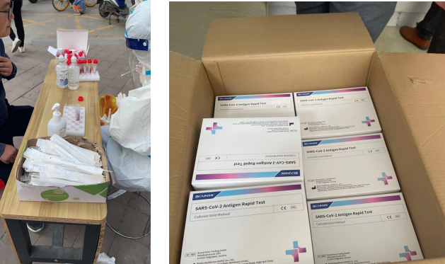 “您好,今天的抗原檢測(cè)開(kāi)始了?!彼贿叞l(fā)放試劑盒,一邊叮囑居民相關(guān)注意事項(xiàng),這個(gè)是她今天的主要工作,從早上6點(diǎn)多和晚上8點(diǎn)開(kāi)始,獨(dú)自承擔(dān)了兩棟樓的抗原試劑發(fā)放和回收工作,挨家挨戶敲響了住戶的家門,面對(duì)個(gè)別住戶說(shuō)打擾了他們睡眠的些許抱怨,她始終面帶著微笑,耐心解釋和等待著。就這樣一家一戶的發(fā)放和最終收集檢測(cè)的試劑,晚上將近11點(diǎn),她才結(jié)束了一天的志愿服務(wù)工作。