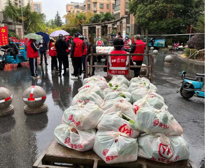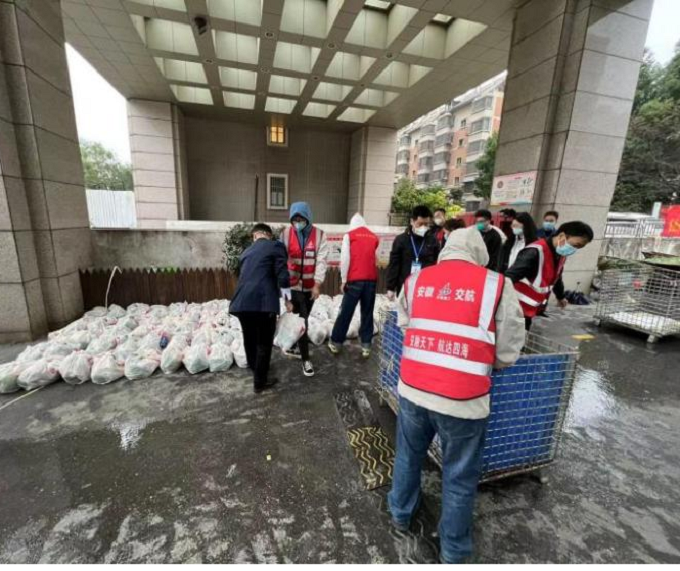 10月26日下午15時,項目部接到嘉山路街道工作人員電話,轄區(qū)內(nèi)美晨雅閣小區(qū)急需人員、車輛協(xié)助發(fā)放居民生活物資。項目部第一時間組織青年志愿者前往該小區(qū)提供志愿服務(wù),志愿者們與社區(qū)工作人員密切配合,一邊緊張有序地裝卸物資,逐個樓棟進(jìn)行發(fā)放,一邊耐心地安撫居民情緒,維持現(xiàn)場秩序,直至晚上21時,順利完成小區(qū)一千多戶居民生活物資的發(fā)放,切實保障了群眾的正常生活。